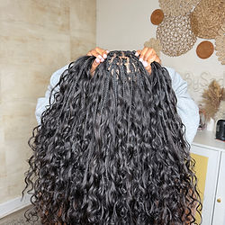Scroll below to see more photos of the different ways you can style this look. Beach Boho Braids add 100% Raw Bulk Indian Bundles to your braid style. This style requires very little maintenance and can be treated as your own hair meaning you can straighten, curl or get it wet and it bounces back. Human Hair IS provided, Braiding hair IS NOT. For braiding hair to be provided AS IS +$25 For braiding hair provided and dipped in vinegar prior to appointment +$45 - Style is available in colors 1, 1b and 2. Any other colors are +$60(comment the custom color in the "Add Your Message" text box under the Booking Details). 4,27,30,613 - 100% Raw Bulk Indian human hair - Each style will have 2 Bulk bundles. For a fuller look, select the deluxe version of this service. - 2 packs of 52" Pre-stretched X-pression Hair needed - Time for appointment will range from 5-8 hours. - Lasts 4 months with proper care or a touch up as needed at 7-8 weeks for longevity.